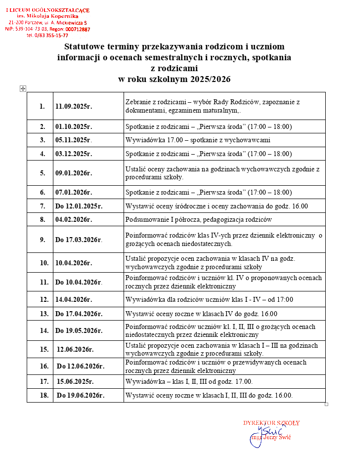 Statutowe terminy przekazywania rodzicom i uczniom